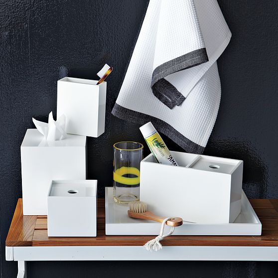 Starting with the bathroom – if the first room I enter when I wake up is clutter-free, it’ll be a good day. These simple and cute lacquer bath accessories from West Elm will do the trick…