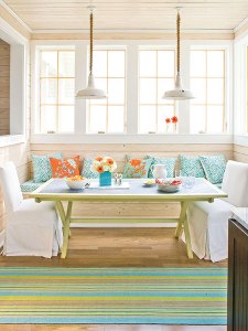 Dining rooms don’t have to be all stuffy and formal, make it fun with couch-like seating for a more inviting space…