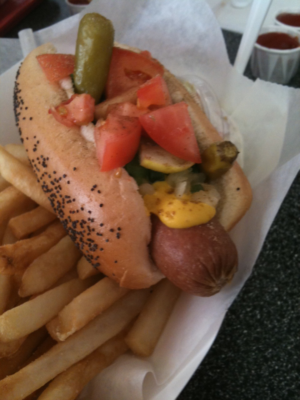 This place reminds me of my very first internship in college. I was interning at a post-production recording company in Chicago, and one day my boss took us interns to a Chicago White Sox game. I had been living there for about 2 weeks, and still had yet to experience the world-famous Chicago-style dog.