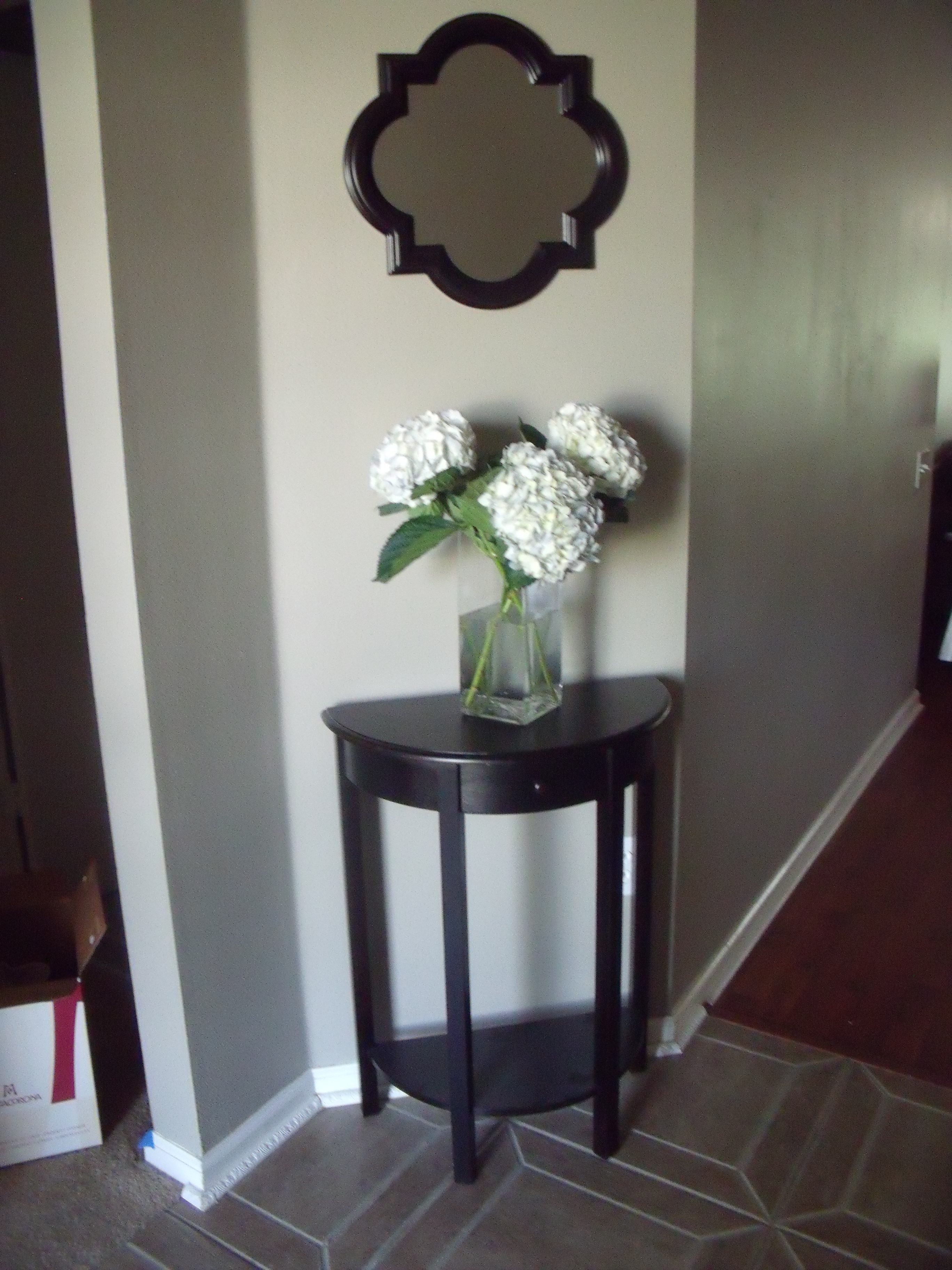 Mirror and table paired together – with help from Mother Nature – makes the perfect entryway get-up – perfect for a good first impression.