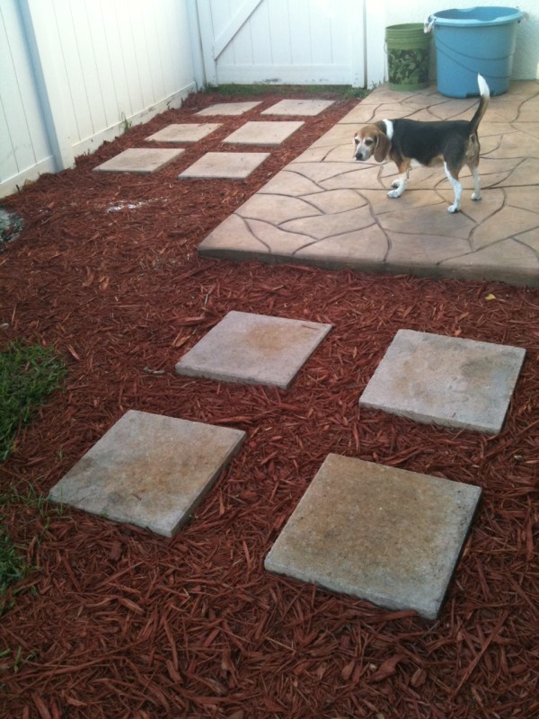 Come to find out, mowing the grass can do wonders. It’s amazing what things you might find. We found big red pavers, and that gave me an idea.