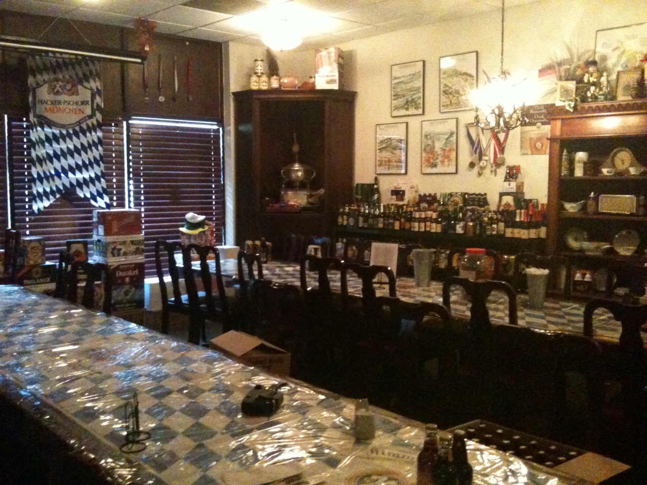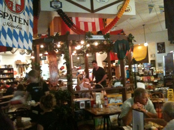 When you first walk in, you’re instantly transported to Germany. I’ve never been to Germany, but I can guess that this place is pretty good at replicating it. The entrance is filled with gaudy decor that covers every corner – flags, German emblems and maps, and of course beer and beer posters.