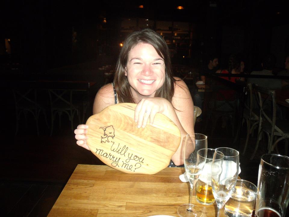 I continued to cry harder. I couldn’t see anything as he handed me the unopened black box. (can you tell we’re rookies?) I opened the box to see my ring. After a minute, he said, “Well does that mean yes?” I hadn’t answered him yet! I said “Yes, of course!” And jumped up to hug him – still crying – to the sound of loud cheers. I turned around to see the entire restaurant giving us a standing ovation – the bartender we talked to when we first got there (he knew), the hostess who sat us (she knew), our server (she knew), the chefs, servers and runners (they knew) and everyone dining that night (they figured it out). I couldn’t contain myself – this spectacular dinner was just topped by a even more spectacular dessert (which we didn’t touch, by the way).