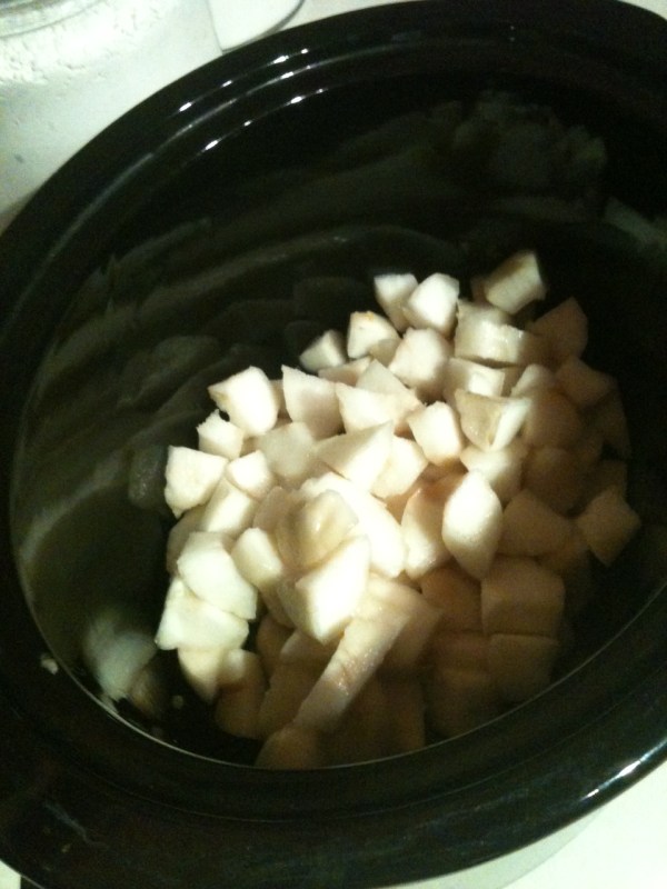 There are a number of things I probably could do with pears, but since I’m a beginner, I started simple. Enter the homemade “apple” sauce…